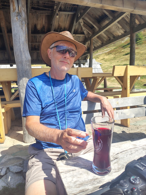 It's Not Flat! ⬅ previous ⬆intro next ➡Day 3 ~ 8 September ~ Virpazar to Biogradska Gora National Park Our itinerary from WF had said that we'd take a train ride today, timetable permitting. Sadly, the timetable does not permit so we'll be on the road again after breakfast.![]() Is it significant that the word "Coffee" is so much bigger than the word "you"? The hotel provides us some supplies for a packed lunch, and we also pop across to the supermarket for a few apples and things. ![]() Farewell Hotel Pelikan. We pass through the unexciting modern town of Podgorica, but soon we are in the spectacular Moraca Gorge. In places, we can see across to the railway line that we would have taken according to Plan A, but don't see much in the way of trains. ![]() Just before this tunnel, there's space to pull in for the views. ![]() Back the way we've just come. ![]() The river below. Now on through the tunnel, one of many on this road which has only recently been built with Chinese money. As with many recipients of China's largesse, some fear that their motives are not entirely altruistic, but then there aren't a lot of alternative options. We are dropped at the edge of the Biogradska Gora National Park, and will walk to our next accommodation. ![]() Ooh, we're quite taken by the good knight "Sir Cheese"! Unfortunately, "domaći sir" just means "homemade cheese" in Serbian. ![]() Anyway, off we go. Interestingly, if you look this location up on Google Maps (as I write this), it's entirely blanketed in snow. It's quite a lot cooler here at this altitude, over 1500m, and skiing is very much a local thing. ![]() First off is a little stop for blueberry juice (and for Marko to flirt with the proprietress. He seems to be worse than me, we've noticed!) Not obvious in the picture are the roof support beams that come down very low at the sides. I manage to bang my head quite hard on one, but fortunately my hat protects me. Kangaroo leather, tough stuff! I have a slight scrape with a little blood, but nothing serious. ![]() These cows look better endowed with pasture than yesterday's. ![]() The landscape can be sparse, but it's beautiful. Once again, we're off the main tourist track and have the place very much to ourselves. ![]() These are wild blueberries, and I hope that they are the source of what we've just been drinking, not some industrial conglomerate. ![]() We pick a few to eat. ![]() If I had any idea whether this fungus is edible, I would know whether it is safe to make a mushroom and blueberry pie. Though even if it is safe, I'm not sure it would be wise. Funnily enough, it's the day after Erin Patterson -- the Australian beef Wellington mushroom murderer -- was sentenced to life with a minimum term of 33 years. ![]() A little break for lunch. ![]() Google image search tells me that this is Gentiana asclepiadea, the Willow Gentian. As always, I have just taken the photo 'cos I like it. ![]() As we approach our destination, there's a slight obstruction! We aren't doing any horse riding on this trip (and if Amanda has her way we won't be doing it on any future ones either), but it's a popular local activity. ![]() This is where we're staying tonight, Katun Goleš. 'Katun' is the Balkan word for a small clan community or village of semi-nomadic herders. There are a few families here now offering tourist lodges, and we'll be staying with one of them. ![]() Ours is the second cabin from the right. The toilet and sink block is visible behind and to the right. ![]() Come in! ![]() It's very basic, with the toilets a short walk away and the shower (singular!) a rather longer one. Mind, the shower must be a recent addition because the WF briefing said we'd have none at all. ![]() Ah, when I banged my head earlier, I fell back a bit against something and have acquired a couple of scrapes that Amanda sees when I get undressed for the shower. Again not serious: I have obviously lived to tell the tale. ![]() This is the dining area. There's some space inside but we all sit out. Slightly surprisingly, neither of us took any pictures at dinner, but Amanda's diary entry says we had vegetable noodle soup followed by courgette fritters, pork schitzel, salad, cheese and bred, all washed down with local Vranac red wine. Vranac (the 'c' is pronounced as 'ts' in English) is probably not a grape you are familiar with: we certainly weren't, and it scarcely exists outside Montenegro, North Macedonia and Croatia. It actually originates from Montenegro, where it is by far the most planted variety in the country. A scholarly article about selecting the best clones for production starts off "‘Vranac’ is an autochthonous grape cultivar of Montenegro" -- and we have another marvellous and too-rarely used word to enjoy. ![]() "Wherever I lay my hat and my orang-utan, that's my home." Goodnight. ⬅ previous ⬆intro next ➡ |
