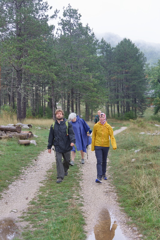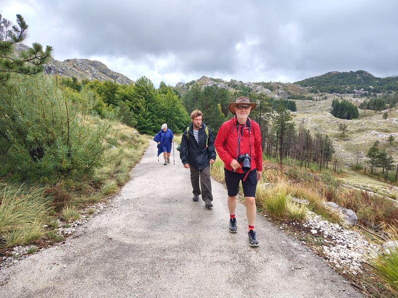 It's Not Flat! ⬅ previous ⬆intro next ➡Day 6 ~ 11 September ~ Poscenje to Cetinje to Kotor The weather got worse last night: thunderstorms and heavy rain. We may need to adapt our plans a bit, but we shall see.![]() Before we leave, we'll just have a quick look around the lodge, which we've not really had any time to see. This wall is painted with a portrait of Lalović and some of the famous mountains he climbed. ![]() Eco credentials to the fore! ![]() Although you could be forgiven for expecting something a bit more substantial. It's not being used, and I've not noticed any EVs at all, though I haven't particularly been looking. A little research shows that the country has been slow to adopt them generally and charging infrastructure is weak outside cities. ![]() The weather is looking a bit mean and moody, although it's not raining now. ![]() And now we're in the clouds. It's about two and a half hours on the road to Cetinje, and we are in and out of clouds and rain most of the way. Marko plays "Future Days". Well that's a hit! He and Dasha are both blown away and can't believe that something so modern sounding is more than fifty years old! It's another contribution to my thesis that it's not just special pleading and nostalgia for the 70s, it really was a unique time for music. Can were never as widely known as their contemporaries Kraftwerk, and to some degree Tangerine Dream, but they were one of a number of German bands inventing their own take on rock'n'roll that had very different roots to Anglo-American pop/rock. And speaking of Kraftwerk, Wir not quite fahr'n, fahr'n, fahr'n auf der Autobahn, but trundling along well enough. The rain has stopped by the time we arrive, though the streets are all still wet. First stop is a coffee shop and then we have a short city tour with a local guide. She tells us to call her "Milly" as her full name is a bit of a mouthful. She's a language teacher in her day job, and tells us the unsurprising news that children learn Russian and English here, but the rather more surprising fact that they also take Latin. Now I have a Latin O-Level, but even in the 70s, that was pretty esoteric and few non-public schools offered it. At one time it was a part of the entry requirements for Oxford and Cambridge Universities, but even they had moved a bit more into the 20th century by then. [For non-English readers, a "public school" in Britain is what the rest of the world would call a private school, and for those and also younger readers,"O levels" were a class of school exams taken at about age 15-16, but phased out in the 1980s] ![]() The town centre is mainly pedestrianised. ![]() This is not Milly, this is Princess Xenia, who was born in the city in 1881 when it was the royal capital. Much of her early life was spent as the subject of public speculation about her potential suitors and rumours of marriage, but she remained single all her life, an intellectual and artist rather than the traditional unit of currency in international alliances. And she was the first woman to drive a car in the Balkans according to the US Embassy website! If searching for more information online, do be sure to distinguish Princess Xenia Petrović-Njegoš of Montenegro from Princess Xenia Georgievna of Russia, and especially Xena: Warrior Princess. ![]() As the former capital, the city has a lot of fine architecture. This, for example, was the French Embassy, now used by the National Library. ![]() This is the "Court Church", the Serbian Orthodox church where Princess Xenia is buried, built on the site of a former monastery. Curiously, there's another nearby church which looks absolutely identical bar the hexagonal tower, the Vlach Church. Nothing I can find on the web even mentions this similarity, let alone explains it. The latter church originally dates back to the 15th century but was rebuilt in its present form in 1864, while the former is from 1890, so maybe a deliberate copy. ![]() This is the "Blue Palace", and I agree you could be forgiven for thinking it's not very blue. It looks a good bit bluer in a photo on Google Maps, but that was taken in 2019, so the paint could well have faded a bit though it was still pale even then. It's the official residence of the President of Montenegro, but I don't think he's at home today. The sentry boxes outside are both empty, and everything looks a bit shut up and lifeless. Slightly surprisingly, I don't have a picture of Milly. She's been an excellent guide and given us lots of information about the locality and the people in a short time. Mind, she herself admits to being one of the top local gossips who knows everything about everyone's business! Back in the bus, on to Lovcen National Park where the itinerary said we'd be walking an old military road into Kotor but it seems we're doing something a bit different, hiking up to a mausoleum at the top of a hill with interesting history and amazing views. ![]() We'll start walking just across from here, but first we'll have lunch. The original plan called for packed lunch but it's been changed to the restaurant here, and sadly it's not a change for the better. Dry overcooked trout is not a good thing. It starts raining quite heavily, and we're not sure whether we'll be walking or not, but by the time we've had coffee it seems to have stopped so we'll take our chances. ![]() Not too many chances, though. In the car park we all put our waterproofs on before setting out. ![]() It's still not raining, though damp, and the walk starts off pretty flat. ![]() But we're headed towards that hill you can't see because of the clouds. It's not going to stay flat, that's for sure. ![]() Strangely enough, as we start to climb the road goes from gravel to tarmac for a bit. ![]() We start seeing loads of large snails with colourful shells. Marko loves them, and so do I, so we both take many pictures of them. I have a suspicion that Peter and Thérèse probably think us odd. ![]() They get bet