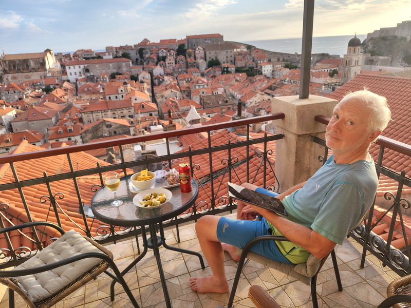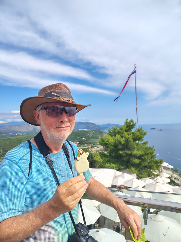 It's Not Flat! ⬅ previous ⬆intro next ➡Day 9 ~ 14 September ~ Dubrovnik ![]() Amanda goes for a run first thing, while it's still cool and the streets are not heaving with tourists. ![]() She gets down to Gruž, the part of the city where the main port is located. There's more activity here, and the shops are not just for tourists either. This is where the big cruise ships will come too. There don't seem to be any of the true monsters in town today, but an article from the Dubrovnik Times in 2021 says that "The largest cruise ship ever to visit Dubrovnik sailed into the port of Gruž this morning", being the Norwegian Epic carrying up to 4,100 passengers. Still not one of the really big ones, at 6000+ guests, but it helps to explain why the Old Town is so rammed, even this late in the season. She gets back and has her shower while I wake up. We've booked one of these "pay what you think it's worth" city walking tours this morning, so we're back down to the Pile gate to meet our guide. ![]() It's all a bit chaotic down at the square in front of the gate, and the description we've been given of Marco, our guide, doesn't quite match Roko, who is our actual guide in his place, but we figure it out. He's a good guide, very knowledgeable and gives us an excellent little potted history of the town as we walk around it. ![]() This bronze statue of the writer Marin Držić was made to celebrate the 500th anniversary of his birth in 1508. Somehow it has become the custom to rub his nose for luck! Note what appears to be a bullet hole in his neck, which nobody seems to be able to explain. The fighting in Dubrovnik during the Croatian War of Independence was all well in the past by the time it was installed, so it's not a war wound. ![]() Lunch at another cafe near the harbour. Tuna poke bowl for me and Amanda has a (barely!) toasted mozarella, pesto and tomato ciabatta roll with chips. I have made the better choice, but it's ok. ![]() And a fine Croatian beer, of course. We discuss our next move. We think a boat ride might be good, but we can see that they are all very crowded (and not cheap) and we reckon that it would be a bit of a step down from our Montenegro experiences. There's a cable car up to a fort at the top of a hill just inland from the city, and Amanda can hike up a footpath while I ride the car, so that's what we'll do. ![]() "Dubrovnik's Cats" is not just a shop! They are part of city life and are everywhere. We approve. ![]() Not sure if it's a bar or an art gallery! There are quite a few little galleries here, and we do find some things we like a lot, but not quite enough to buy. ![]() Incidentally, this is the entrance to our apartment. Not particularly exciting, but really it's all about the terrace and the city view. We work out our logistics with Google Maps. The cable car station is just outside our gate, a couple of minutes walk away, but from there, Amanda will have to walk along the main road a short distance before she gets to the base of the path up the hill. She shouldn't be able to get lost, but she does have a talent for it. Ok, slight divergence now. First, Amanda's ascent: ![]() She doesn't get lost. Phew. The trail is clear, though a bit rocky and rough, especially at first. ![]() Wow, a wild tortoise on the path! Now back to me. Unfortunately I draw the short straw and am crammed into a full car with people in the way for the most interesting picture angles. ![]() From the station at the top, though, I can show that there's a superb view of the Old Town to be had as the cable car climbs. ![]() Radio tower or ballistic missile? I give Amanda a call and start down the path to meet her. ![]() Gosh, bronze Stations of the Cross for ascending pilgrims. Amanda didn't know she was a pilgrim. ![]() Both at the top now. Amanda says that Google told her she should take 1hr 4m with no stops. She reckons it was 53 minutes including a tortoise stop and a Stevie stop. The fort proper is a tourist attraction but it's not covered by our Dubrovnik Passes and it looks like it's €5 just to read some sign boards inside a stone-walled courtyard, so we don't bother. ![]() The ice cream isn't a patch on the ones we had at Perast, but not bad. We'll both walk back down the path now. ![]() Another excellent view of the entire Old Town on the way down. ![]() One of the rougher bits. ![]() All but back now. Ambling casually down has taken longer than Amanda scuttling up! The car park at the bottom is outside the Buza gate where we'll go back in. ![]() Drinks and nibbles on our terrace again. We briefly meet Pat and Mike from Illinois, who are staying in the other apartment. Despite Amanda's initial concern for the shared spaces, we've not so much as glimpsed them until now. Funnily enough, they had wanted to go hiking in Montenegro but couldn't find a company to organise the trip for them. Gosh! We tell them about WF: perhaps we've found them some new clients. ![]() Then it's back to work in the kitchen for me: pasta with octopus and salad. Amanda is sorting out some of our stuff for re-packing, though we still have another full day here. ⬅ previous ⬆intro next ➡ |