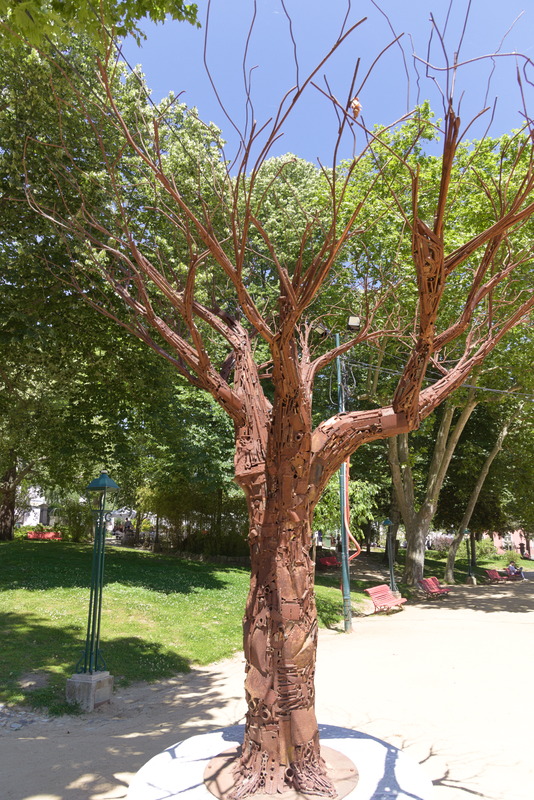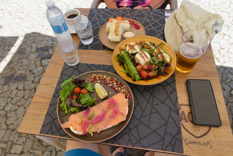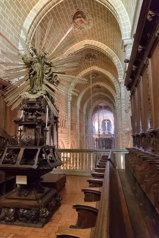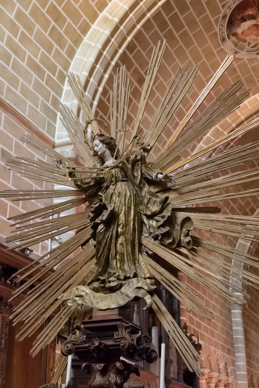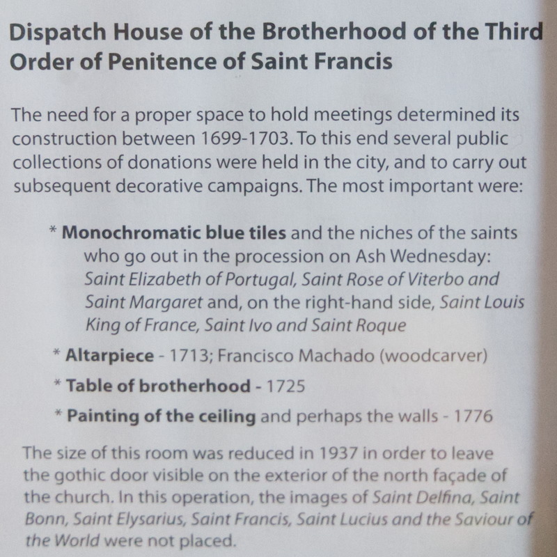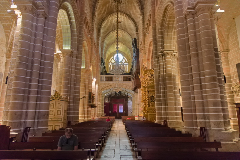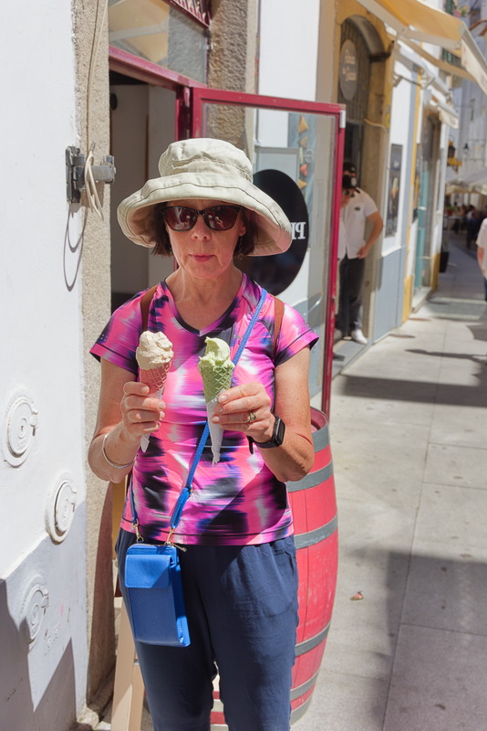 That Wasn't There Last Time We Looked! ⬅ previous ⬆intro next ➡Day 11 ~ 25 May ~ Évora Today we're just going to walk around and explore the town a bit.![]() Starting with the square where we've parked the car (it's just behind us). ![]() The roof of the cathedral. If you look at this place on Google maps, it is labelled Catedral de Évoraso we're clearly doing the full-on tourist thing. ![]() Yep, a view. ![]() The Portuguese take health and safety very seriously, and they clearly worry that visitors need to be warned about the risks of falling off the parapet. Note, however, that the warning is in Portuguese, German and English: possibly they're not too fussed if a Spaniard or Frenchie plunges to their doom. ![]() We don't think these are dog kennels, but, well, what? Chicken coops? Gargoyle hutches? Google search finds a myriad of similar photos and text articles, none of which tell us more than we already know: that we're on the cathedral roof. I throw the question open to the audience: any ideas? ![]() I think these must be symbolic flaming stone torches, but am open to offers on this one too. ![]() The stairway up here is quite narrow, and I imagine that in the height of the season the visitor numbers get a bit silly, so they have this traffic ligth system. Pay attention to the ligth! ![]() Inside, but still well above the ground, this is the "high choir". A plaque tells us, As all the Romanic and Gothic churches, Évora's Cathedral had inYou are at least now better informed. ![]() Me, I was just taken by the striking Mater Dolorosa. ![]() I don't know whether this obviously modern panel is meant to be a 'restoration' or a simple replacement of an original beyond repair. Or whether it's just a new chapter in the story of a still-living building. ![]() Finally, we see the cathedral interior from ground level. The nave is quite plain, but very elegant. ![]() But the chancel and the apse turn up the bling! ![]() The ruins of the Roman temple. It's more historically and culturally significant than you might think looking at it, but we don't know this as of now, so don't pay all that much attention. It's a popular backdrop for wedding photos, according to visitevora.net and I think I saw a few selfie queens, though I would generally have been trying to get pictures without them and therefore have no proof. ![]() More art. Can you guess? It's popularly called "The Kiss", and it's by Japanese artist Syoho Kitagawa, although Google's AI Overview says "The sculpture is officially titled "La pleine lune s'abime dans la mer agitée" (The full moon sinks in the rough sea)." and that squares with some non-English websites I've briefly looked at. But yeah, sorry, gotta be shallow again here; it's ok but. ![]() More art. But... The dogs don't think this is art, they think it's a multi-user drinking fountain. ![]() A cake shop display window. Nothing to be seen except some cakes? It's not as simple as that. ![]() There you go! I hope you are not the horrid sort who would disturb a poor sleeping cake. ![]() Pasteis de Nata may get all the publicity, but they are far from being the only Portuguese tarts. ![]() Think we'll have some for elevenses, and very nice they are too. ![]() You know how a tin of sardines is something that lives in the back of a cupboard, possibly for centuries because they don't actually go off or anything...? Not in Évora! This is a shop that specialises entirely in tinned sardines and other fish, and even literally gold-plated ones! We are talking seriously artisanal stuff, which is something we'd never even thought about in this context. We have a fine chat with Mr Man, and he is easily convincing enough for us to want to give his wares a try. We take a selection including the aforementioned gold and another labelled "1965" in honour of Amanda's birthday. I fear it has cost a bit more than Aldi own-brand, but in the grand scheme of things, even expensive sardines aren't that expensive. [Ok, maybe the gold leaf and the lobster lifted the sardine average.] ![]() This so reminds us of our previous trip! Even the locals must have got a bit bored with 1991 cuisine. We don't actually go there, but if we weren't self-catering, it would be high on our list of places to try. ![]() I think this is something to do with some upcoming city festival; if not, it's a bit weird. ![]() Ice cream? Churlish not to. ![]() And now it's lunchtime, but a similar principle applies: "Beer? churlish not to." ![]() Amanda will have a coffee though. ![]() We can't complain about the quantity, although the shared salad is way too gunky for Amanda's taste. (And we both agree that it contains far more cucumber than any bowl of salad ever needs.) ![]() Into another church: St Francis this time. ![]() We're very taken by the fine carving of the marble pillars. ![]() It's big enough. Apparently it's the largest nave of its kind to be found in Portugal. What is its kind? "Groin vaulted" it would seem, which is a technique invented by the Romans. This example seems atypical, though, compared to what is online. Compare this example from Wikipedia's article. ![]() It's a kind of hybrid I think, but you'd best find yourself a more expert guide to Gothic architecture if you want the real low-down. ![]() Now this is what you call a meeting room! Strangely, although you can find any number of near-identical photos to this with Google image search, you will be hard pressed to find any description of what the room is. I couldn't find anything at all, even on the official website. ![]() Fortunately, there's an information board in the room, and I took a picture of that. What you will find online, but not here, is all about the "bone chapel" next door. The "Capela dos Ossos" was created by Franciscan friars in the 17th century, using around five thousand exhumed skeletons to decorate the structure. I can't remember now whether we didn't realise this at the time, thought it too gruesome to visit, or just didn't f