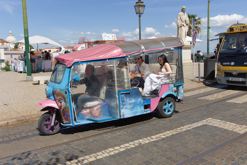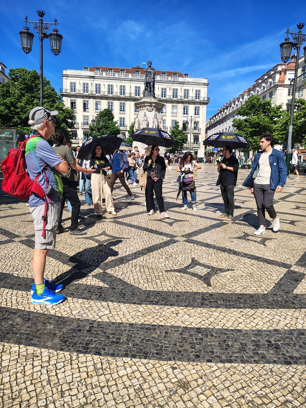 That Wasn't There Last Time We Looked! ⬅ previous ⬆intro next ➡Day 2 ~ 16 May ~ Lisbon We've booked on one of these "pay what you think it's worth" city tours today.![]() We are curious,.. Turns out not be so exciting. From their website: Unicorn Factory Lisboa is a City Hall flagship initiative aiming to position Lisbon as a leading European innovation centre.Oh well, never mind. ![]() Our instructions say to meet by this statue in the square, but we're a little early and nobody is here yet. ![]() And then there were three! (Tour leaders, that is.) It seems the tour is very well subscribed, so we'll split into multiple groups. We will go with the middle of the three umbrella wielders here, whose name I confess I have semi-forgotten but I think is Irina. ![]() We can't deny the mosaic designs are quite something. This makes me think of the Blue Peter ship (which may or may not mean anything to you) ![]() The real thing isn't quite identical, but I think you can see what I mean. While searching for the above image, I was outraged to discover that Blue Peter badge copies are now freely available from websites like Etsy, and you can even download 3D printer files to make your own! Is nothing sacred any more?! Of course, I'm sure the mosaic is meant to honour Portuguese naval history and great navigators like Magellan and Vasco da Gama and has nothing whatsoever to do with an iconic British childrens' televison program. [Should I add a web link here? Or does anybody who could possibly care not need such a thing? "Answers on a postcard, please", which itself is a thing that probably hasn't existed since Blue Peter's classic years. I think I'm getting digressed from my digression...] But let us walk the streets of Lisbon! ![]() Gosh, it's the curious cow shop we previously discovered in Spain. Interestingly, it was founded there in 2001, almost the same timeframe as the building of the Alqueva dam that created the lake we will be visiting! So much has happened since we were in Portugal last. Their website says, "In 2001, with the opening of the first ALE-HOP store, it was decided that there was a very important team member who should always be present in the stores: OUR COW." We can only applaud their good sense and clear vision. ![]() A very retro-looking poster for a film that opened yesterday! It's half a century since their heyday, so it's a fair bet that if the film is going to make any money, it will need to appeal to many who weren't even born by the time they split! I know I'm biased, obviously, but somehow the universe seems to be trying to tell me that my formative years were the best time for music... Yet, thanks (and I mean that ironically!) to BBC4 re-broadcasting old episodes of "Top of the Pops", I can tell you that the most glorious era for music that ever was, the 1970s, was full of the most unspeakable dross, mercifully forgotten until some sadist rubbed his (almost certainly 'his') hands in glee and decided to brutally remind us of the reality we didn't want to accept. But that said, you look at Wikipedia's list of 1970's UK number ones, and blimey, there's a lot that still stands up today. (Yeah, yeah, the very first entry is Rolf Harris' "Two Little Boys": I said 'a lot', not 'all', ok?) ![]() This cantilevered walkway leads to a lift that allows the infirm (and just plain lazy) to avoid some very steep streets. We (being neither infirm nor lazy, of course) are just checking it out as an engineering sight to see. ![]() There's a viewing platform above, but sadly it's closed. Read more about the Santa Justa lift on Wikipedia. ![]() The Igreja do Carmo (Church of Our Lady of Mount Carmel), destroyed in the 1755 earthquake and only partially reconstructed. ![]() The old Carmo Convent building is now the headquarters of the Guarda Nacional Republicana. ![]() I suspect this shop sign is a bit out of date. It looks like it sells rather less violent camping gear now. ![]() Aha, the bottom of the lift we were at the top of earlier. ![]() The tour takes us to one of the many shops that sell pasteis de nata for some samples. We have to say (strictly to ourselves) that they aren't quite the best we've had, though they're still pretty good. Perhaps surprisingly, even in Lisbon we've yet to find better than Santa Nata in London's Borough Market. ![]() Later we try some little fish cakes. Ok, but not something we will remember as a great discovery. ![]() What does this mean? I have absolutely no idea. A Google image search is no help either. ![]() This one is a bit easier. It's Saint Anthony of Padua, who was born in Lisbon and is the city's patron saint. Although his feast day isn't for another month (13 June), the locals are already starting to get in the swing. Remember yesterday we saw some people putting up streamers? That's why. They're all over the place now. ![]() Another local sample: cherry liqueur. You can get it in a conventional plastic cup for €1 or a chocolate cup for €1.50! I splash out with abandon (Amanda will be outraged if I don't get a chocolate cup for her to share), and it's nice enough for me to buy a bottle. Ok, not a big one, just 100ml. But still. ![]() We are not splashing out €98 on one of these bizarre scooter sculptures. ![]() Believe it or not, Lisbon is actually nothing like as weird as I seem to be making it look with my choice of pictures. ![]() This is one transport option, but we want to take a tram. ![]() The Lisbon tram network was first created in the 1890s, but it was the beginning of the 20th century before electric power was used. They have modern vehicles on one line, but the city centre trams are all the historic 1930s "Remodelado" type as here. Not just a tourist attraction, they are retained because the routes are twisty, narrow and steep, quite unsuited to modern trams. ![]() E28 is the most popular for tourists, so it tends to be very crowded most of the day. ![]() From the sign, at least, the British Bar looks like it's seen 