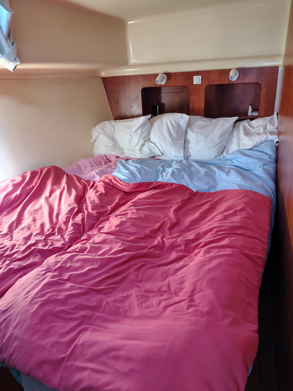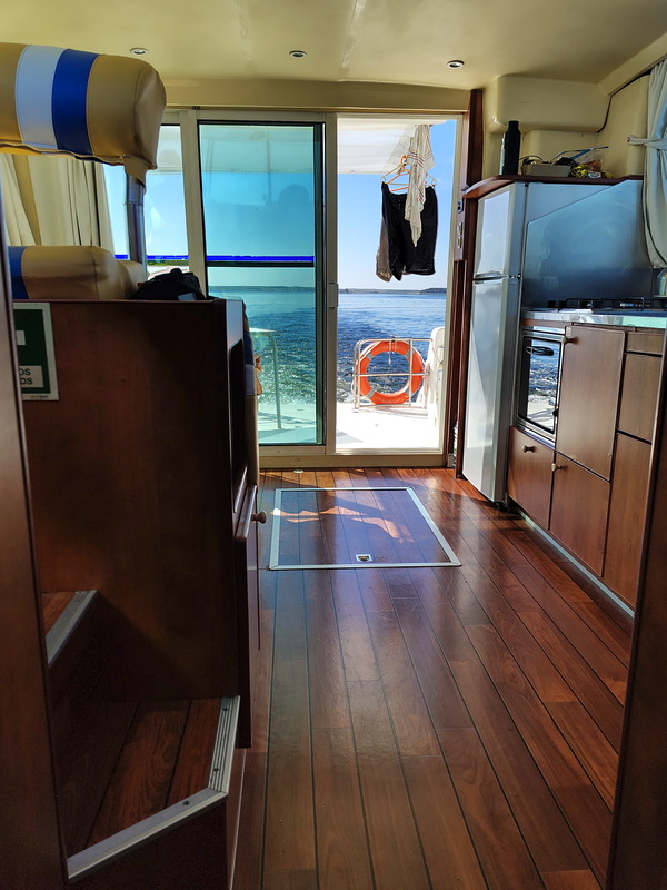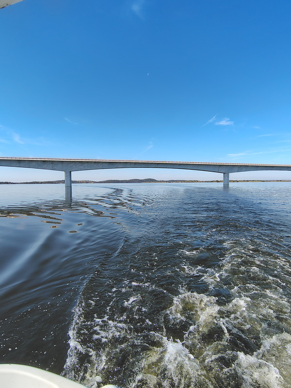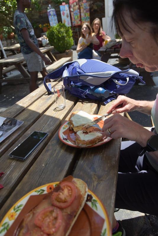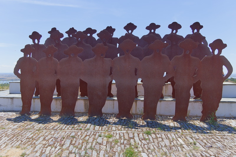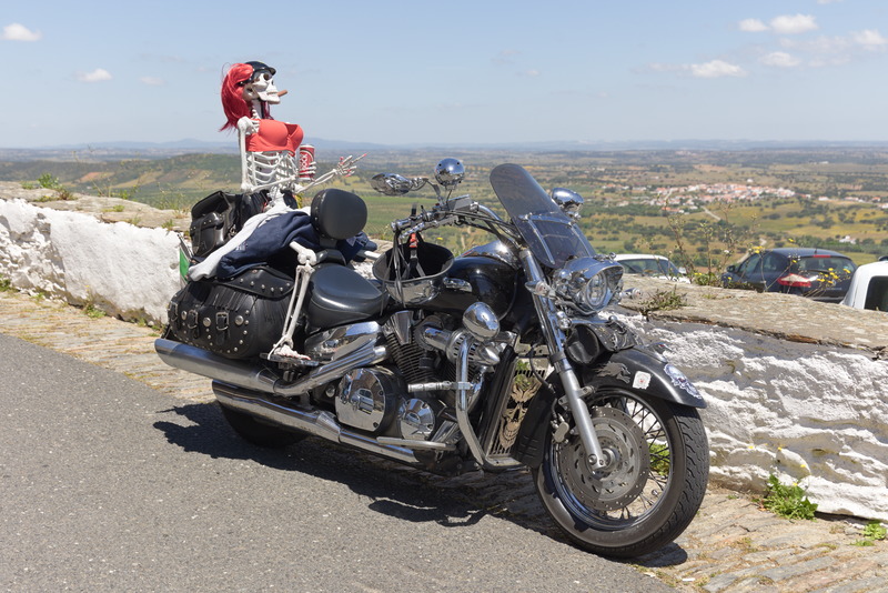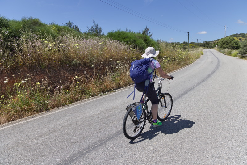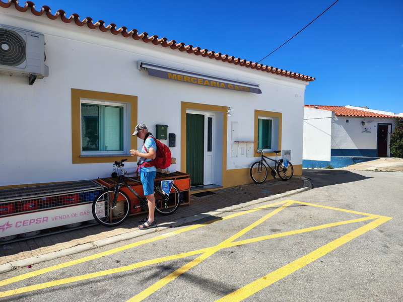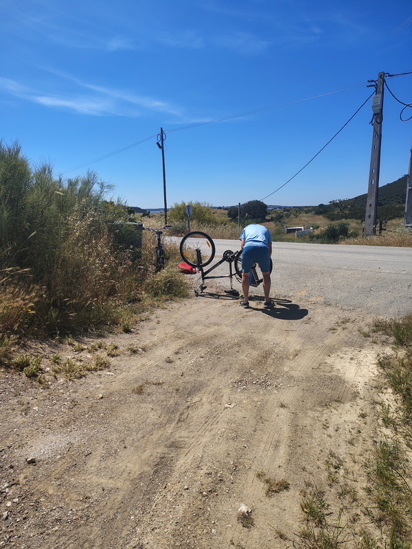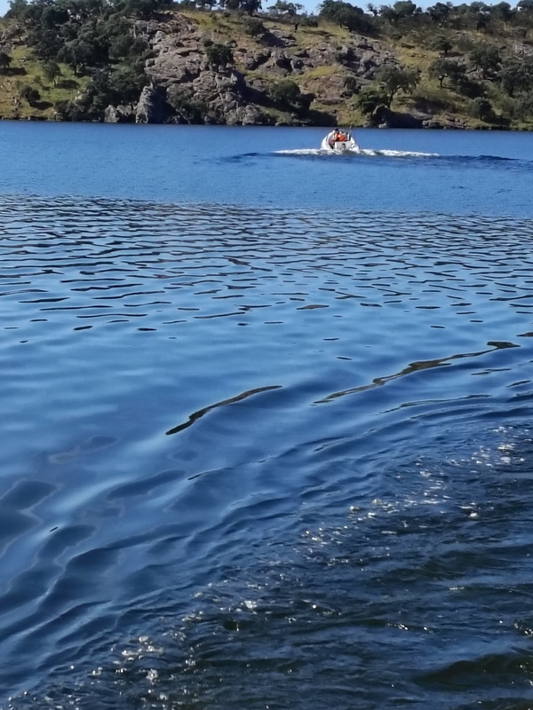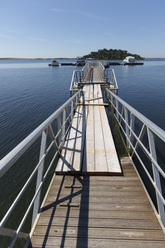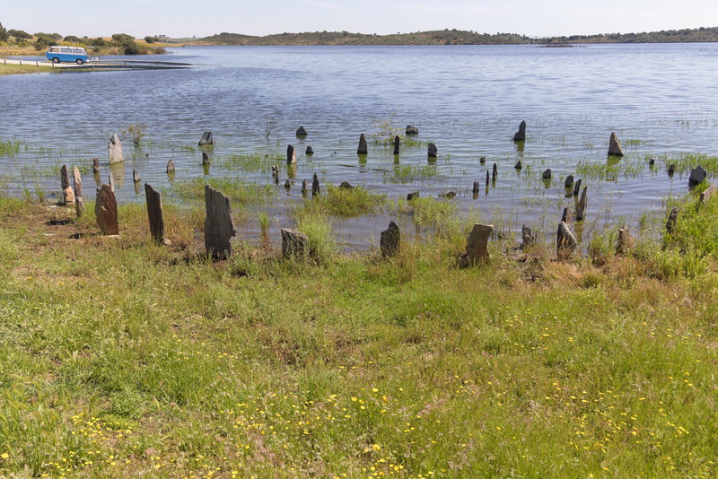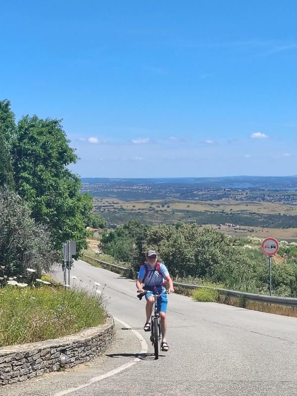 That Wasn't There Last Time We Looked! ⬅ previous ⬆intro next ➡Day 6 ~ 20 May ~ Alqueva Lake Today just an hour or two's sailing to Monsaraz, another mediaeval walled town that is a local must-see.We leave the empty pontoon and head off into the empty lake. Not another boat to be seen? Well there's one in the distance, and it seems to be coming our way... It seems to be coming straight towards us... It is coming straight towards us: it's a small fast RIB and it's got "Police" written on it! They (politely) ask us to stop, and they come aboard. We show them our paperwork and they seem happy enough. They ask us in a pleasant conversational way if we're planning on doing any fishing, and it's only much later that we think maybe they are fishing for us to admit we will be doing so without a licence. After a few minutes, they wish us a pleasant holiday and we go our separate ways. Perhaps with the lake being so empty, they just got bored and wanted to chat. ![]() Amanda grabs a rather blurry digitally-zoomed picture of them when they are at a safe distance. It probably wouldn't have been very tactful to go snapping away at them when they were beside us. But now I realise we've not had any pictures from inside the boat. ![]() There are two cabins at the front, one either side. This, on the left (sorry, port!) side is where we sleep. ![]() And here in the starboard cabin is our wardrobe. There's 'proper' storage space of course, but it's always pretty cramped on a boat, just like in a caravan, so we always go for 4-6 berths to let us spread out a bit. The smaller boats can also be a bit lacking in other facilities too. ![]() The tap heads extend on flexible tubing for showering, and the whole bathroom/toilet cubicle is essentially a tiny wet room. Having one per cabin, we can dedicate them to different purposes so you don't have to sit on a wet seat when you need to go! ![]() Looking back from the cabin area into the living space. As well as the full-size fridge-freezer, we have an oven and a four-ring gas hob: that's better than we had in the apartment when we stayed in Hobart! Then again, it looks like the cooking facilities here are maybe a bit more necessary than in Hobart. As I mentioned, the villages we've seen so far have been pretty empty and we get the impression that there aren't too many restaurant options. Our info pack from the boat company mentions a few possibilities, but recommends phoning to check first, and we suspect it's now too late in the season for most of them. What we also haven't seen, which is a bit more of a surprise, is local village markets where we can buy local produce. Our reference points for this type of holiday have been exclusively French to date, and cooking what we've bought from the market that day has always been something we've enjoyed. Monsaraz seems to be a bit more of a place, though, so we shall see what we can find there. ![]() Bright blue skies and utterly still water; we are alone again and our boat's wake is the most disruptive thing for miles. We've just passed under the bridge that carries the only road linking the two sides of the lake. The map shows minor roads ending at the lake shore which would once have continued into the river valley, and then maybe to some smaller bridges, but no more. Further up, the lake and the river form the border between Portugal and Spain, so there would probably never have been many crossings anyway. On the subject of Spanish waters, we have been told we can cross the demarcation line with no problem, but shouldn't spend a night on the Spanish side. ![]() Gosh! Look back at the pontoon, count the boats! While this is by far the most we've seen since leaving the dam, it seems pretty clear that the other three are locals, not tourists like us. Two of them look semi-permanently parked, covered against the elements. ![]() You could be forgiven for not realising that this is an artwork. It's echoing the neolithic stone circles which are to be found in the region. (Oh, and note the VW campervan in the backround: we are clearly no longer in post-apocalypse world.) ![]() To be fair, we might not have realised it was an artwork ourselves without this subtle clue. "Cromlech" is a curious word: originally from Welsh crom (“bowed, arched”, feminine of crwm) + llech (“flat stone”) and used to mean a dolmen or megalithic stone tomb, it's become extended to include stone circles in English, and thence adopted into other languages with only the latter meaning. The Portuguese word is actually cromeleque, and there's an important local one which was moved from its now-flooded original location and reconstructed. Possibly wrongly reconstructed according to Wikipedia! See the Xerez Cromlech [Cromeleque do Xerez] page. We'll visit it later. There's a castle here too, but it's all a bit of a way, so it's time to break out our bicycles! They are not, shall we say, the most exotic specimens ever seen, but hopefully will do the job. ![]() Ah. Amanda's bike turns out to have pretty knackered gears, and I have to do some emergency maintenance. I don't have all the tools I need, and even if I did, the mechanism is (to use the formal technical term) shagged. But I can fix it to the point where she has a low enough gear for the hills, even if she'll be doing a mad hamster-wheel impression on the flat. ![]() Yeah, not good, but it'll just about do. If you've read our Girona blog, you may recall that the fancy road bikes Mark provided were enough to convince Amanda she needed to spend thousands of pounds on something speedy of her own: this is not such an experience. My own bike isn't great, but at least it all works as well as can be expected. ![]() On the way, we pass the Alqueva Lake Observatory. It's all closed now, and as we've found is common, there isn't much English to tell us what's going on. ![]() Nearly at the top of the hill and into the town. ![]() But first we need a deep meaningfully artistic moment. This is the M