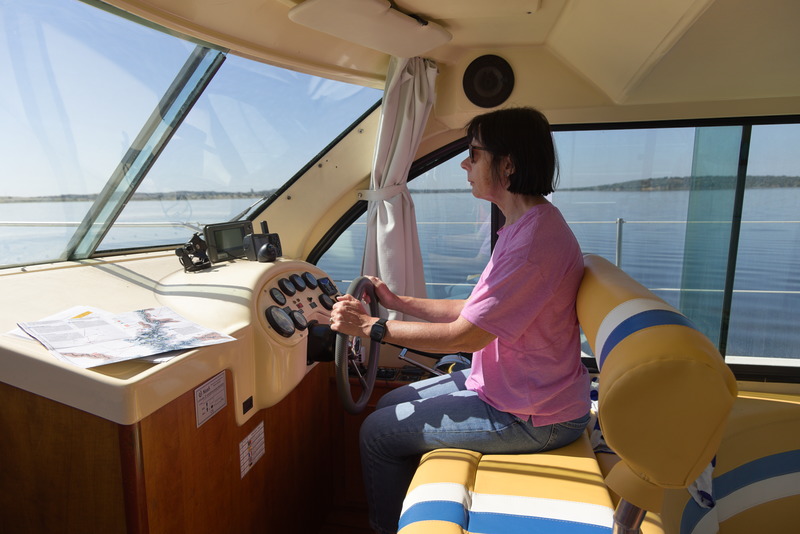 That Wasn't There Last Time We Looked! ⬅ previous ⬆intro next ➡Day 7 ~ 21 May ~ Alqueva Lake Today we want to visit the town of Corval, known for its ceramics workshops. It's a bit of a long cycle ride, but it looks like there's another mooring point that's closer, so we'll drive the boat there first.![]() Amanda takes a turn at the wheel. Unfortunately, when we get to our destination, there's nothing remotely like a jetty to be seen! Either we've misread the map or it's out of date, but we're not landing here. Back the way we came, then. ![]() It takes us the best part of an hour and a half to cycle, but it's another nice day and we don't have a schedule to keep. And here we are at a pottery, in case you couldn't guess. Actually, if you were Portuguese, you might not be able to guess. All of those words are quite different to the Portuguese one. ![]() Phew! An olaria sign. Now we're sorted. ![]() It looks nice, but it also looks closed. Although it's the middle of the week, a lot of places seem shut, probably because there isn't enough passing tourist trade this late in the season. Once again, we are walking mostly empty streets. We do manage to find somewhere that's open, and have a bit of a chat with the proprietor and buy a couple of the little ceramic swallows that seem to be on every wall. You can see the sort of thing at the right of the workshop above, but it seems we don't have any photos at all of the place we actually go to. ![]() See, deserted. ![]() Nothing to do with pottery, just such a fabulous colour. ![]() And there are lemon trees everywhere. We had tried and failed to buy lemons in the supermarket before, and perhaps the reason is that nobody local needs them. Just at the bottom right, there appears to be a mysterious hand: I wonder whose it can possibly be... ![]() Not quite true third-world level... ![]() Now you might be forgiven for thinking that the "Corval House of Culture" is some sort of museum or gallery. Since it's closed at this moment, we can't tell. So I have looked it up: it appears to be a football team! ![]() The town pump has known pumpier days. ![]() There's going to be a festival, but it starts tomorrow, so all we see is a bit of setting up. It's been another interesting - up to a point - town. Now I have to say that if it were a straight choice between the near-ghost-towns of Alqueva and the family resorts of the Istrian coast of Croatia in school holiday time (2019: no blog; it was that good), we'll take the former, no question, but we are still a bit surprised at how different this is from our previous boating holidays in France. ![]() Note well, English motorists! Of course, it's not difficult to give cyclists room on this road. We certainly can't complain about traffic round these parts, and while better bikes would be nice (especially Amanda's) it's all very calm and relaxing, with only enough hills that we don't have to feel we're being all pathetic and wimpy. ![]() Either side of this grand gate, there is nothing like a fence, let alone a wall, to keep anyone out. Obviously a bit of symbolism is important. ![]() See this road? "What road?" you may well ask. No, I can't see it either from this angle, but walk into the grass and look back... ![]() There's a road sign telling you to stop even if it's not clear how you would have started. We're sufficiently far from the lake here that it's impossible to say, but it could well be that this was a road from a place now underwater that doesn't get any mermaid traffic. ![]() We look up to Monsaraz (which we visited yesterday) from a different angle before we rejoin the route we took from the boat both days. ![]() We saw this yesterday, but didn't check it out because it was getting a bit late by the time we'd investigated other things. ![]() It doesn't look too imposing from outside. ![]() From the inside, though, it's architecturally interesting even if a near-ruin. ![]() It looks a bit more dramatic from this angle. Google tells us that the Ermida de Santa Catarina was built in the 18th century, probably by the Knights Templar, to protect travellers in the area. This historic building exhibits the symbols of the Knights Templars and the architectonic style typical to the order. The interior is a wide space with a Romanesque arch granting access to the apsis. ![]() Well goodness! Look what Amanda has done! Oh, but wait: she's ridden this hill (slowly) twice in the last three months and that makes her number one?! I think it's fair to say that this is not like Girona, where you can't move for hardcore cyclists racing up and down every bit of road to be found. We sure as hell didn't get any Strava shout-outs there! ![]() Her reward is to go for a little swim. ![]() I'll check out some other birds... For the nerdy amongst you, this is using the Canon RF 600 f/11 lens, which is a bit of a weird one. Normally a 600 mm lens is huge, heavy and costs most of a centipede's arms and legs: Canon's more traditional EF 600 f/4 weighs over 3kg (which they call "super lightweight) and the best price I can quickly find online is nearly £13,000! Mine weighs less than 1kg and costs about £700. So what's the catch? Well, that f/11 figure is what makes all the difference. In essense, the bigger the f-number, the less (expensive!) glass is needed, but the less light the lens captures. With cameras of previous generations, you couldn't get decent pictures with the amount of light that f/11 implied, but Canon's latest range is more than capable. So it's a compromise, yes, but then everything is. There's no way I would have ever considered that 3kg/£13k lens so its optical superiority is completely academic. Yeah, if I was a professional making my living out of the pictures I take, that would change the balance completely, but I'm not: I take posh holiday snaps :-) [End of nerdy bit.] ![]() My booty! Just what I need for a G&T! ![]() I look lovingly up into my true love's eyes. ![]() And then we'll have a selfie. 